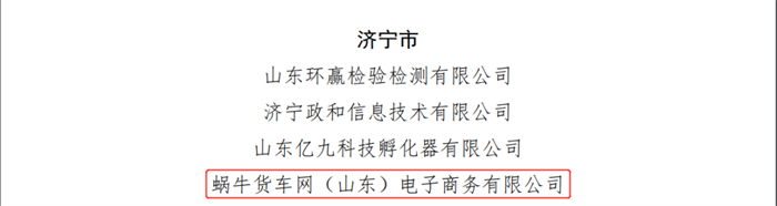 12月28日,从山东省工业和信息化厅发布的《关于公布2022年度山东省中小企业公共服务示范平台名单的通知》鲁工信服〔2022〕274号文件中传来喜讯!经主管部门推荐、形式审查、专家评审等多环节审查,脱颖而出,成功获批!认定蜗牛货车网(山东)电子商务有限公司(下称:蜗牛货车)为2022年度山东省中小企业公共服务示范平台。