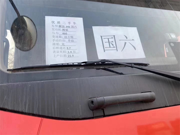21年9月解放JH6 潍柴发动机460马力卓越版,法士特12速手动挡前二后三板簧,速比3.7,车道偏离,防碰撞预警,四路影像,整车轮胎9成新,包提档,车在梁山华通二手车市场,市场内出售各种品牌牵引车、自卸车、搅拌车、挂车、罐车等主流车型,上万辆车供您选择!