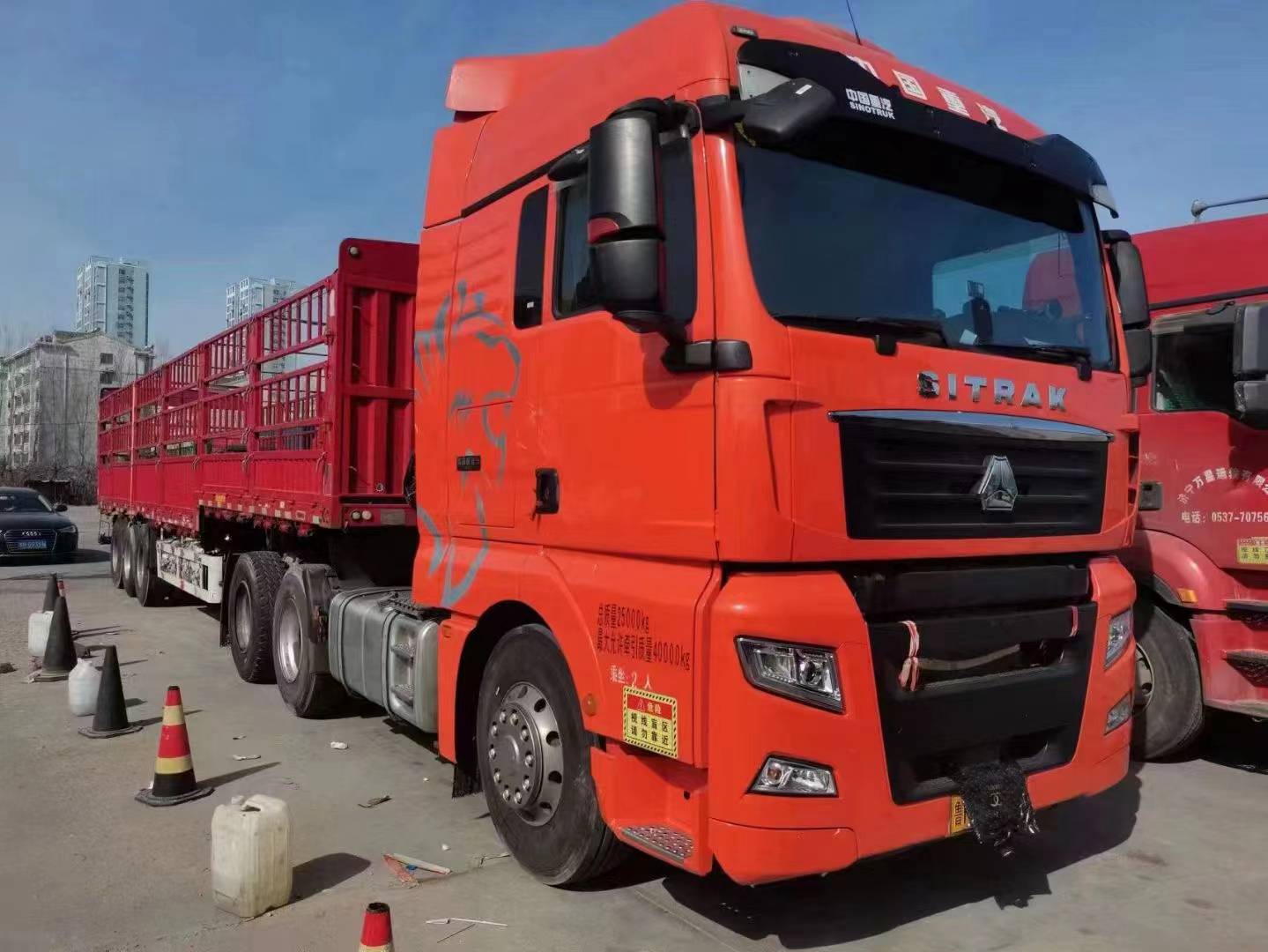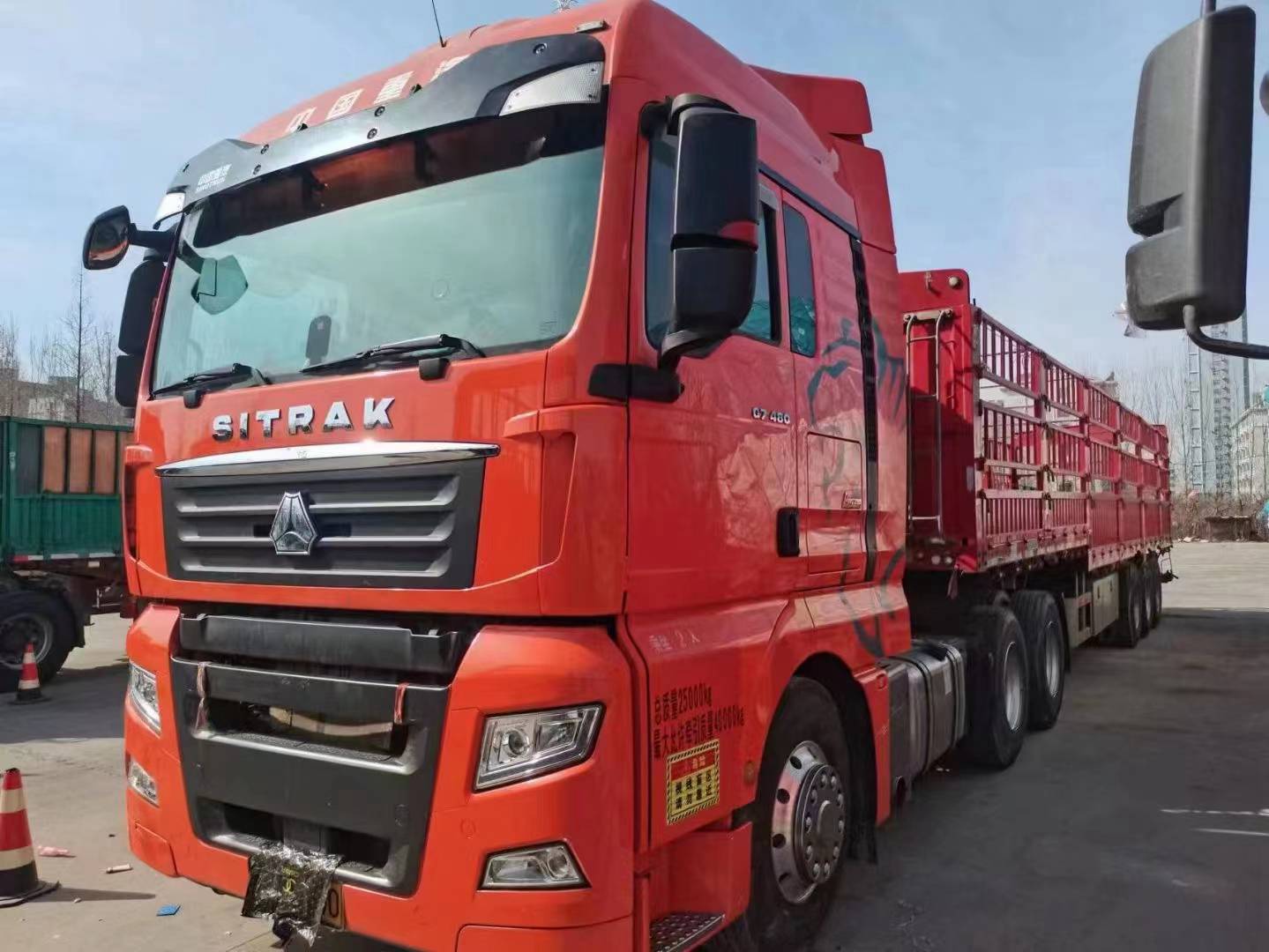 21年4月汕德卡480马力,高配版带液缓,前二后三板簧,带保险,跑11万公里,三包轮胎七八层新,带锣响挂、气囊桥、长12米 宽2.55高1.8米,精品原装车,梁山华通二手车市场内出售各种品牌牵引车、自卸车、搅拌车、挂车、罐车等主流车型,上万辆车供您选择