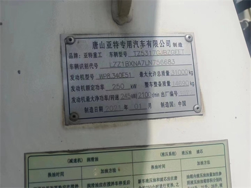 21年1月出厂3月挂牌,大14拉16方,车长10370,自重14690,潍柴340马力,价格不高。二手搅拌车汽车底盘、搅拌筒、传动系统、供水装置、全功率取力器、搅拌筒前后支架、减速机、液压传动系统、进出料系统、操纵机构等部分组成。由于技术瓶颈,国产搅拌车罐体容积3m³-8m³的采用国产四大件,8m³以上容积的采用的四大件大部分为进口部件。