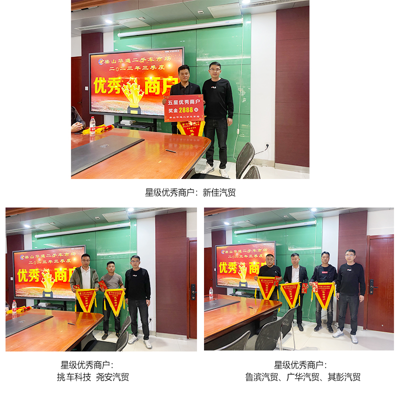 这些商户在第三季度中,以优质的服务体验、诚信的市场经营和专业的技术服务为华通梁山二手车市场树立了榜样,为商户们树立了标杆,获得了广大卡友们的高度认可。