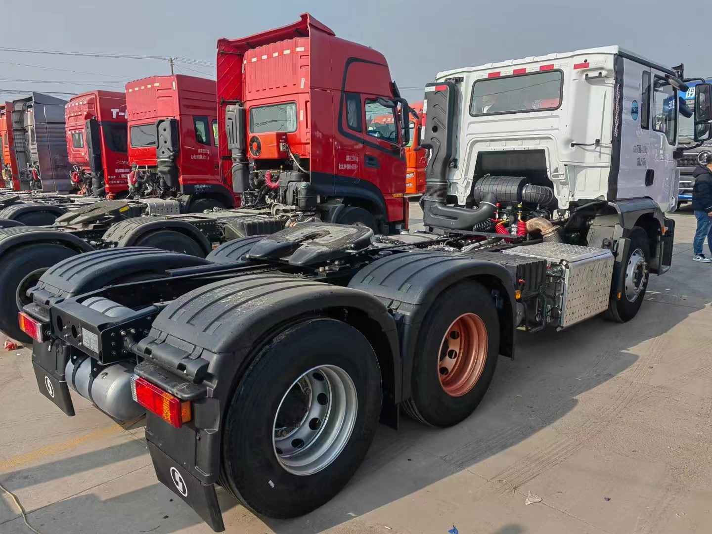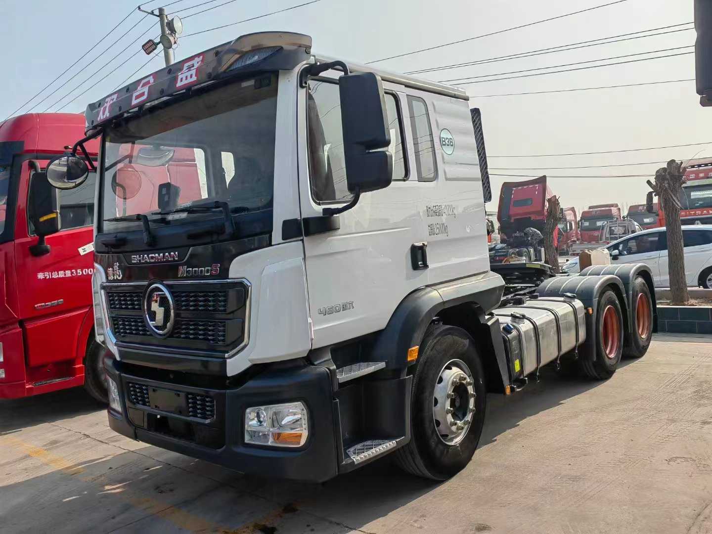 新到梁山华通二手车市场一台白色的德龙矮顶牵引车,陕汽德龙M3000S牵引车,22年7月上户,潍柴12升460马力发动机,法士特(自动怀挡)变速箱,法士特液力缓速器,前二后三板簧,陕西汉德后桥,速比是3.7,全国可提档可分期。