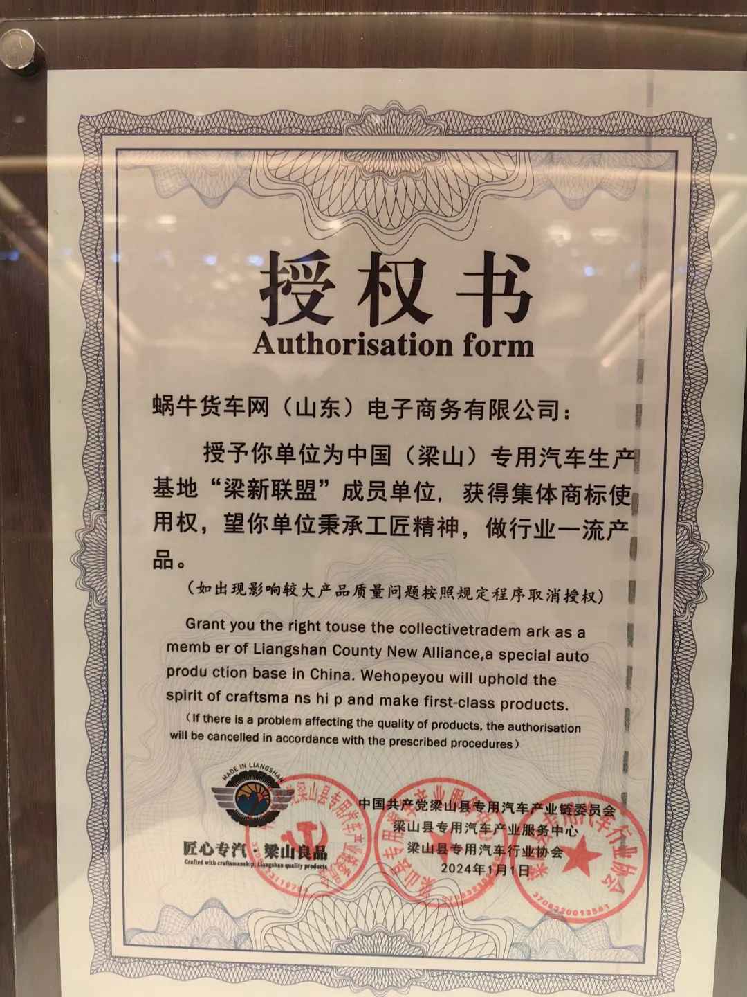 1月17日,“梁山县专用汽车行业协会总结大会”在华锦大酒店三楼华锦厅召开,大会以匠心品质积极融入“一带一路”加快实现专用汽车产业高质量发展为主题,对梁山县专用汽车行业优秀企业和个人进行表彰,其中授予山东华通二手车信息技术有限公司(下称:华通信息)“梁山县专用汽车产业发展杰出贡献企业”、授予蜗牛货车网(山东)电子商务有限公司(下称:蜗牛货车)中国(梁山)专用汽车生产基地“梁新联盟“成员单位。广安集团副总裁郑元旺受邀出席会议并登台领奖。