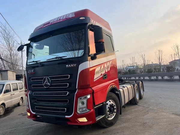 到梁山华通二手车市场一台二手三一牵引车,2020年6月上户的超亮版三一重卡,此车搭配460马力福康发动机,法士特手动变速箱,后桥3.7速比,全车新轮胎。