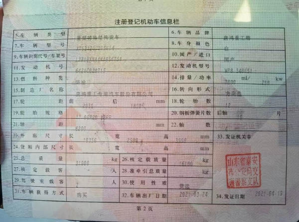 21年4月重汽豪沃金标 精品21年4月,停用9个月,强险到23年9月金标唐鸿重工 潍柴340 动力 车长10350 大14拉17方,营运档齐全!
