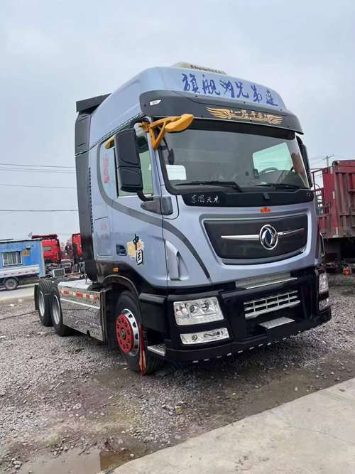 到梁山华通二手车市场一台精品气囊桥旗舰,21年4月东风天龙旗舰KX,560马力东风康明斯发动机,东沃手动14速,国五排放,带原装液力缓速器,速比3.64,双驱气囊桥,车况精品无事故,包提档,支持分期。买二手天龙KX牵引车到梁山华通二手车市场。