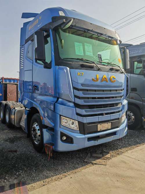 刚到梁山华通二手车市场汽贸扣押车江淮K7二手牵引车,22年10月,560马力,14升发动机,康明斯发动机,采浮变数箱自动挡带液缓,原车空调,采暖,全车新轮胎,行驶10万公里,可以提户分期。买二手江淮K7牵引车到梁山华通二手车市场。