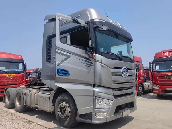 新到梁山华通二手车市场一台精品二手解放牵引车,21年跑车,二手解放大J7牵引车,国六排放,采埃孚自动挡带液缓,全车铝合金钢圈,车况精品,包提全国。买二手货车就到梁山华通二手车市场。