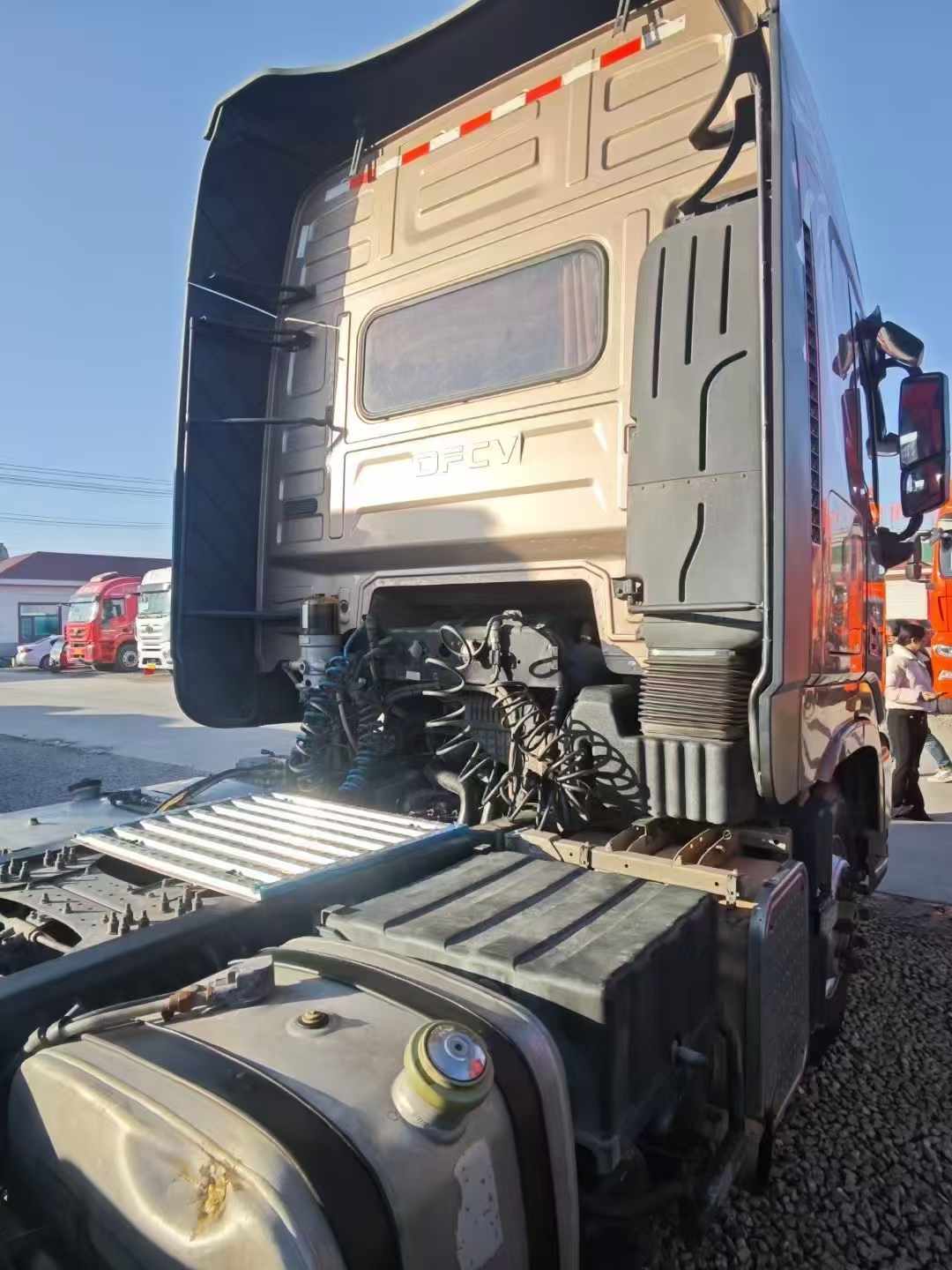 稀缺二手牵引车, 旗舰KX-560 复合板牵引车,21年5月上户,康明斯560马力,国五排放,手动带液缓,复合板, 485后桥, 3.91速比,前三后四板簧,双油箱带加热,实表23万公里,买旗舰KX560马力牵引车到梁山华通二手车市场。