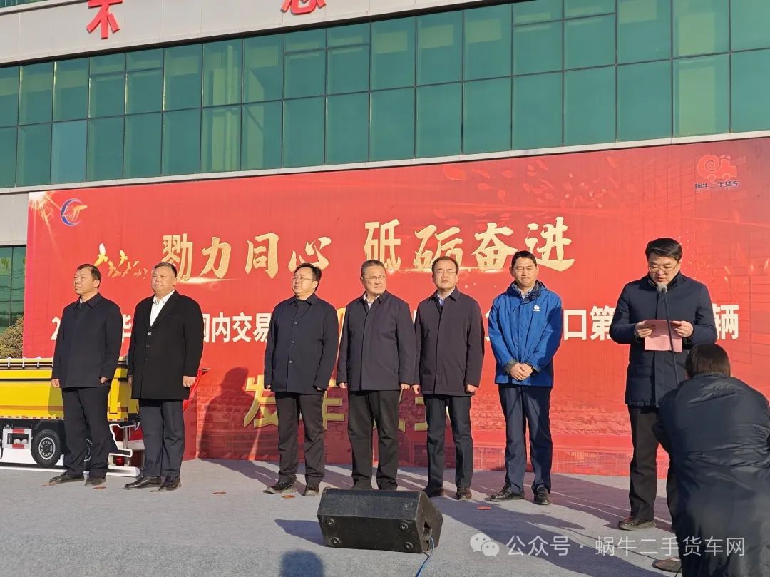 2024年12月29日上午,华通二手车市场迎来了具有里程碑意义的国内交易第40000辆暨蜗牛货车网出口第6500辆发车仪式。梁山县委副书记、县长刘刚,县人大常委会副主任曹景全,开发区党工委书记、管委会主任李来茵,县商务局党组书记、局长薛军起,县市场监督管理局党组书记、局长李志刚,县委统战部副部长张洪涛,县新阶联会长王成允,广安集团总裁何兆广,国内车商代表,国外客户代表,多家新闻媒体等各方代表,共计100余人参与和见证了这一历史性的时刻。县工信局党组成员、专用汽车产业服务中心主任贾春晖主持活动。