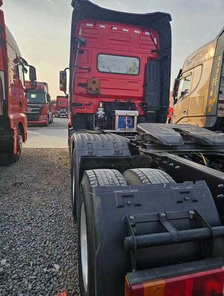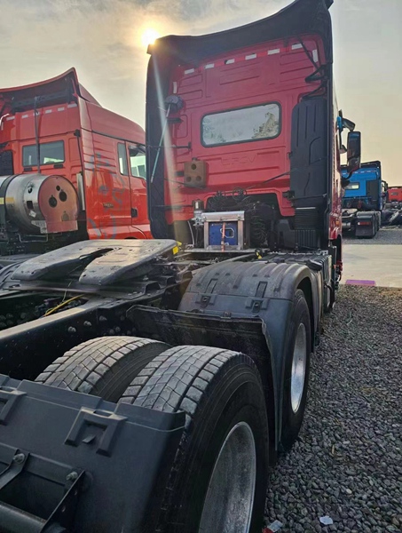 新到梁山华通二手车市场一台21年3月份的天龙旗舰牵引车,560马力手动挡带液缓,速比3.64带高低板高栏,全车铝合金钢圈,车况精品,支持全国提档,买精品二手车来梁山华通二手车市场。