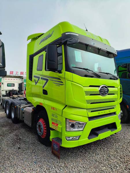 新到梁山华通二手车市场一台二手解放J7 560马力牵引车, 22年3月560嫩芽绿解放J7牵引车, 全车轮胎九成新,车况极品 ,伊顿自动挡 ,带原车液缓,个人一手车,随时提档,买精品二手J7牵引车来梁山华通二手车市场