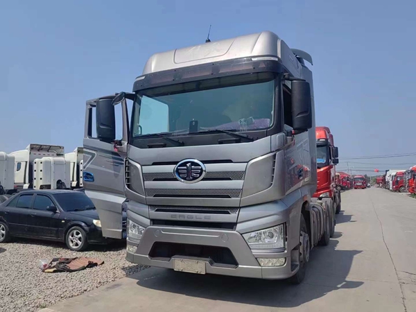 新到梁山华通二手车市场一台精品二手解放牵引车,21年跑车,二手解放大J7牵引车,国六排放,采埃孚自动挡带液缓,全车铝合金钢圈,车况精品,包提全国。买二手货车就到梁山华通二手车市场。
